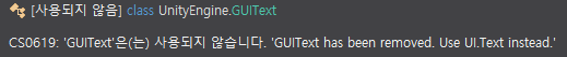 그리고 그대로 GUIText 타입으로 변수를 생성하려 하니 역시나 오류가 발생했다.