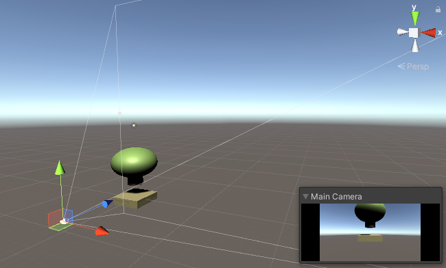 씬 뷰 오른쪽 위 모서리 방향축(?) 아래에 Persp를 클릭하면 투시와 등각(직교, iso) 씬 뷰 사이를 전환할 수 있음.